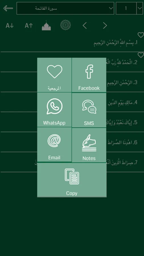 - Sharing your daily content of Arabic Quran Offline with E-Mail and SMS