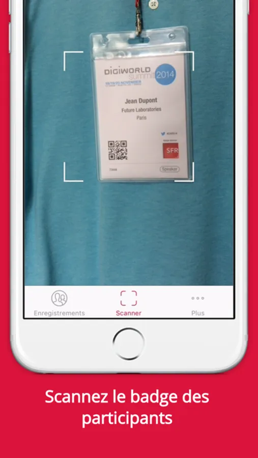 Lorsque vous participez à un événement compatible avec le service Enchanté, scannez le badge des participants pour enregistrer leurs coordonnées.