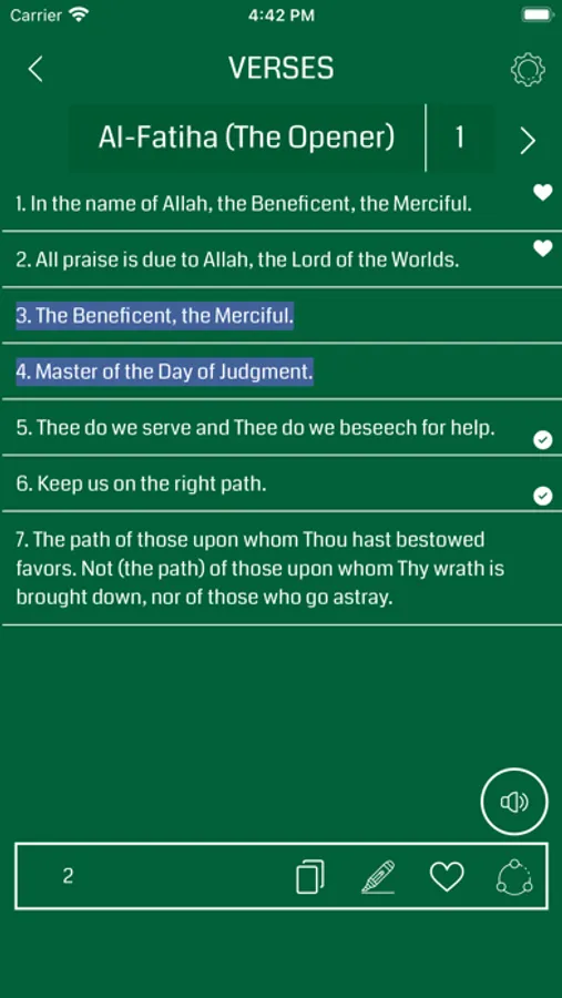 - Swipe the Verse to Bookmark and Share from Holy Quran Audio Shakir