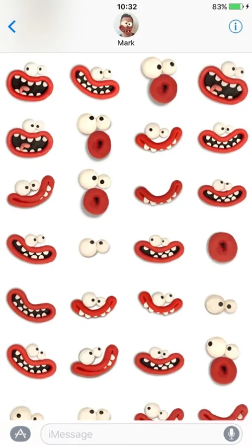 Stick them to your photos to give them a claymation makeover, or send them to your friends!