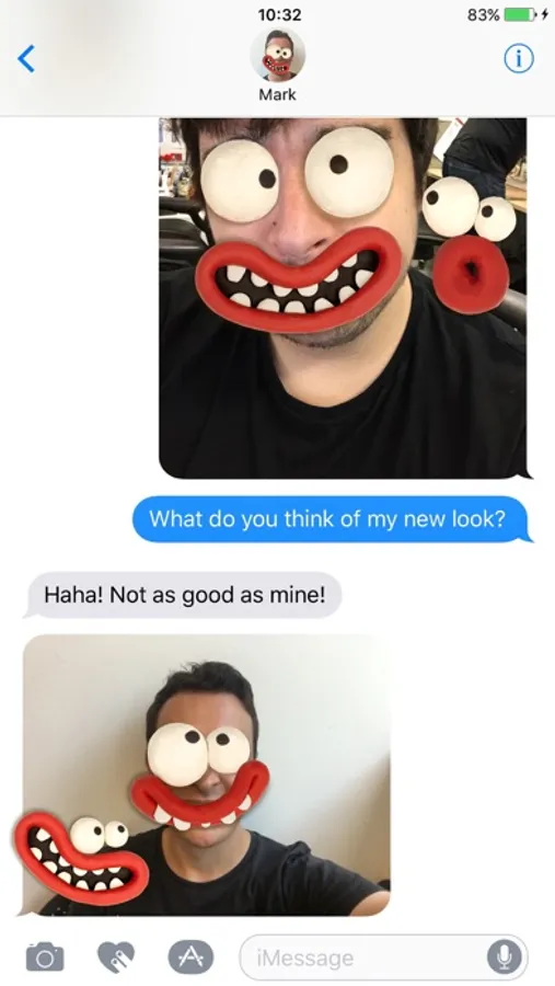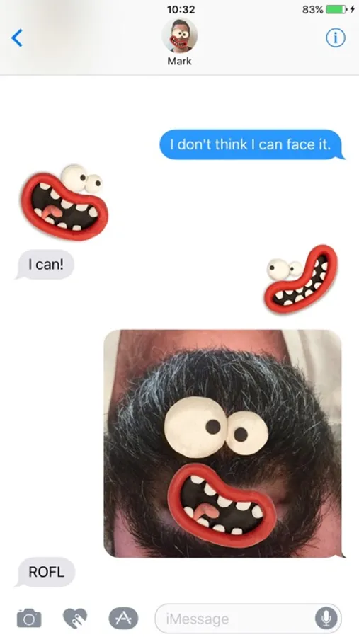 Simply drag and drop a face over the top of any photo in your conversation. Use two fingers while dragging to resize or rotate the sticker.
