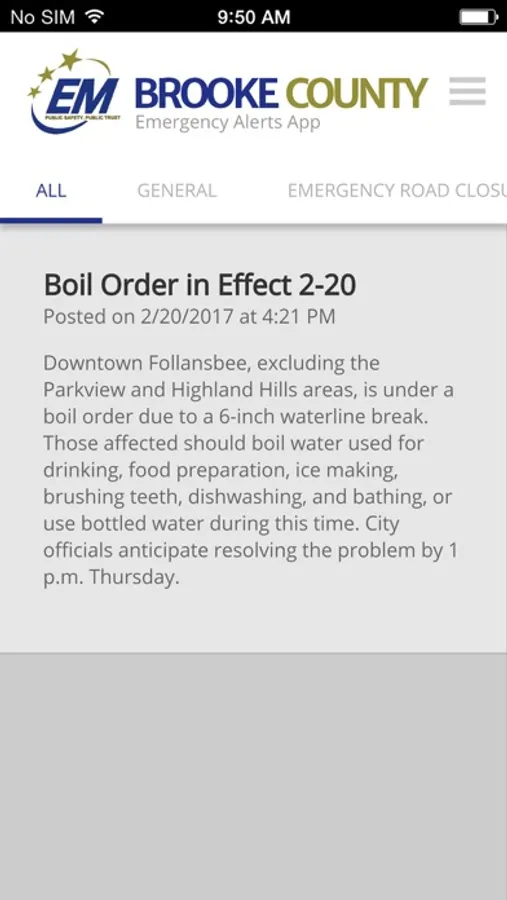 Stay up to date with the latest emergency alerts in Brooke County. Receive push notifications to your phone directly from Brooke County Emergency Management & Public Health.