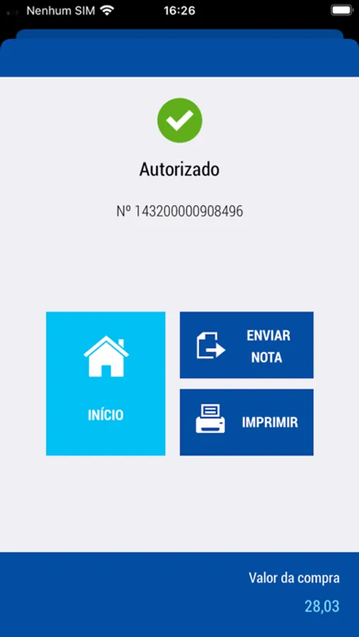 • A nota fiscal é emitida e transmitida para a SEFAZ automaticamente ao concluir a venda.