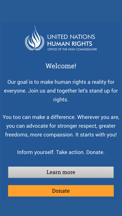 Stay informed and support human rights directly on your phone! Together with the UN Human Rights Office, you can make a difference by helping those whose rights are being violated. Read up on stories and news, watch videos, learn about your rights, share information with your friends, and donate for a worthy cause.