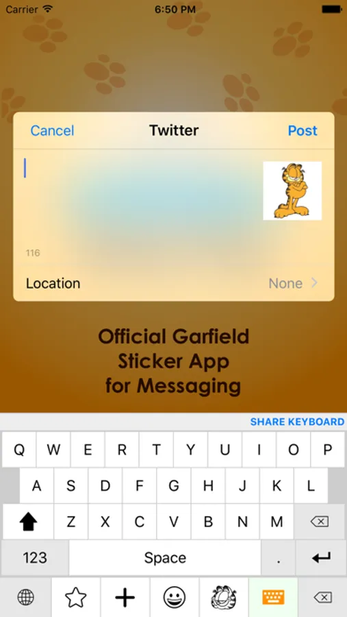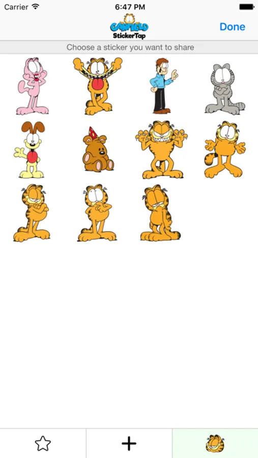 Garfield StickerTap makes it easy and fun to tap into 100s of emojis, stickers and animated GIFs based on Garfield. Simply tap an image in the gallery and send within your message, or add to a photo and share. Garfield StickerTap offers the flexibility of using the features directly from within the app, or enabled as an integrated keyboard extension within your iPhone or iPad settings.