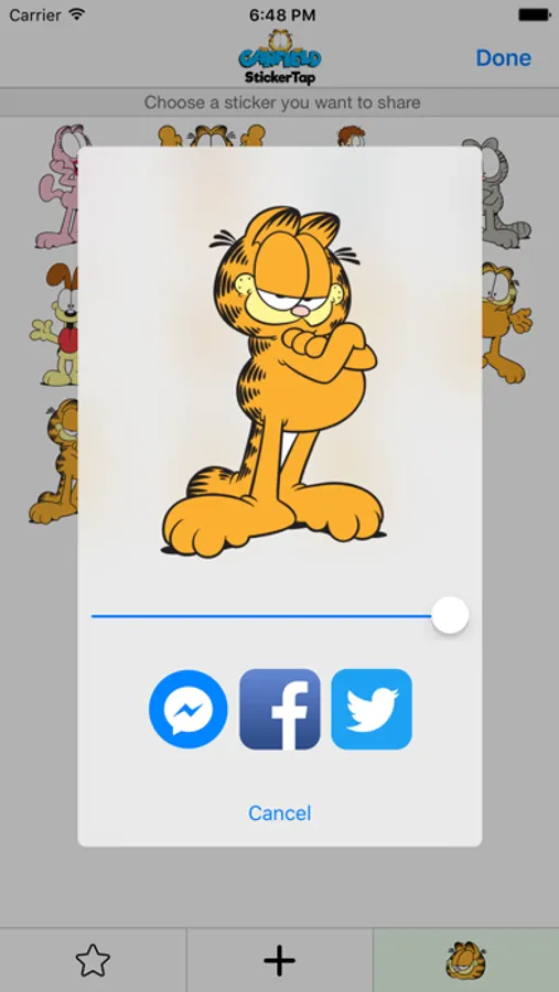 Garfield StickerTap is one of the first apps compatible with the new iMessage sticker feature allowing you to send Garfield iMessage stickers. You can also use the app to send stickers in Facebook, Facebook Messenger, WhatsApp, SnapChat, Twitter, and other apps that allow you to paste images within your messages. Garfield StickerTap makes it easy to add stickers to your photos! You can do this directly in the app, or as a photo extension to add some fun to your photos.