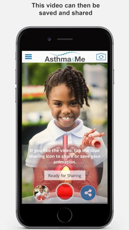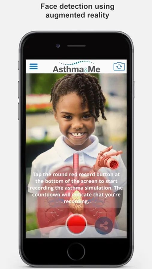 When the iPhone’s front or rear camera is aimed at an individual face, an animation of the lungs is overlaid and a short video illustrating the physiology of an asthma attack can be produced and recorded.