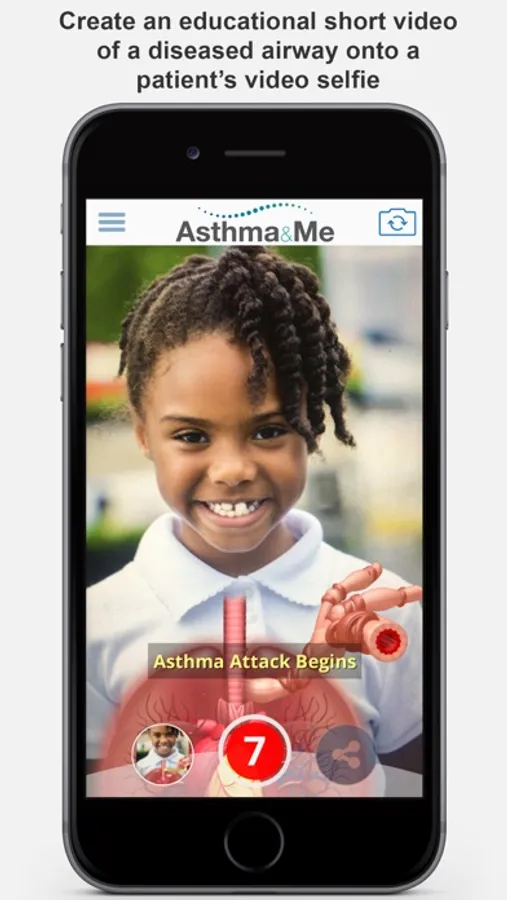 The Asthma & Me app uses face detection technology along with augmented reality to create an educational short video overlay of a diseased airway onto a patient’s video selfie.