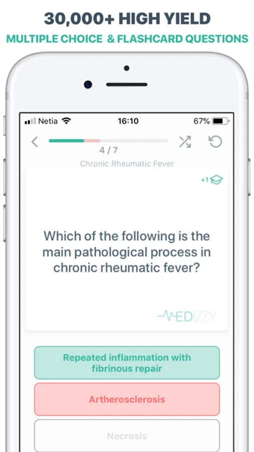 Download MEDizzy and take your exam preparation to the next level. You get access to the world's largest collection of 40k+ high yield multiple choice and flashcard questions prepared specifically to help you increase your knowledge and pass popular medical exams.
