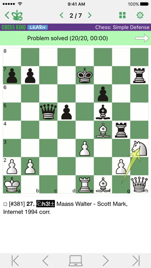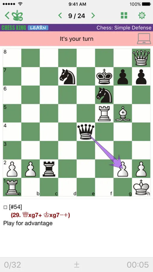 If you are a beginner, you just have to learn how to defend your pieces from being taken! Every chessplayer has to master and consolidate some basic defensive skills such as withdrawing or protecting a piece, interception or attacking an opponent's piece. Having consolidated your knowledge by doing a great number of exercises you will be able to improve your level of playing. This course includes more than 3000 exercises with lots of pieces on the board. Such a great number of exercises makes this course an excellent tool for quick training of chess beginners.