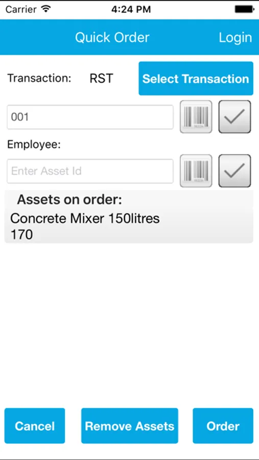 RentalResult QO provides Wynne's customers the ability to securely create basic rental contracts with a minimum amount of input data. Creation of a contract requires only the entry of a transaction, an employee ID and one or more assets. The app also captures a user signature in order to record the identity the creator of the contract.