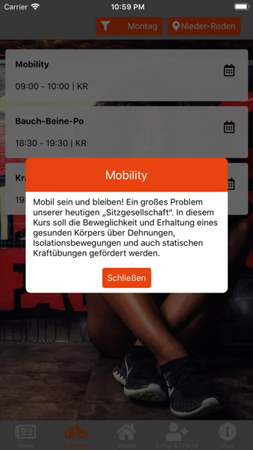 Weiter kann er durch das aktuelle Kursangebot stöbern und bei Interesse, den Kurs direkt in seinen Kalender eintragen lassen.