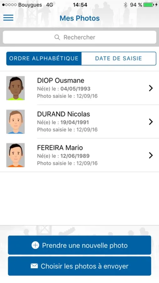 The application matches up each file with the personal data required to identify the employee. It allows you to then email these files to the person at your company who is in charge of collecting the ID photos for the Carte BTP.