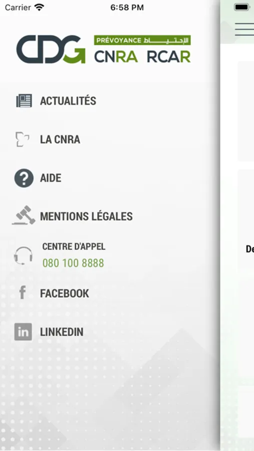 Que vous bénéficiez des prestations de la CNRA ou non, cette application vous permet de garder le contact avec la Caisse à travers les réseaux sociaux, le site Web ou par téléphone.