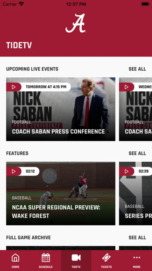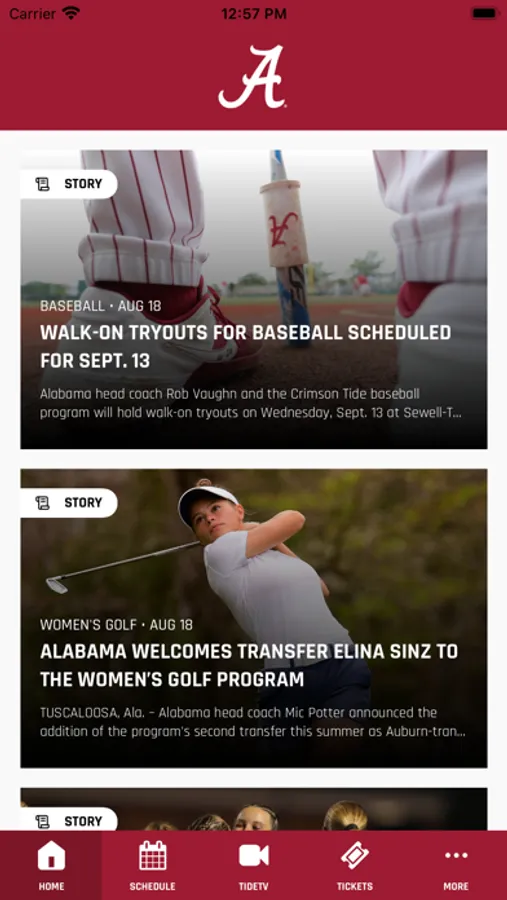 The official University of Alabama athletics app is a must-have for fans headed to campus or following the Crimson Tide from afar. With exclusive video, interactive social media, and all the scores and stats surrounding the game, the Alabama Gameday Live app covers it all!