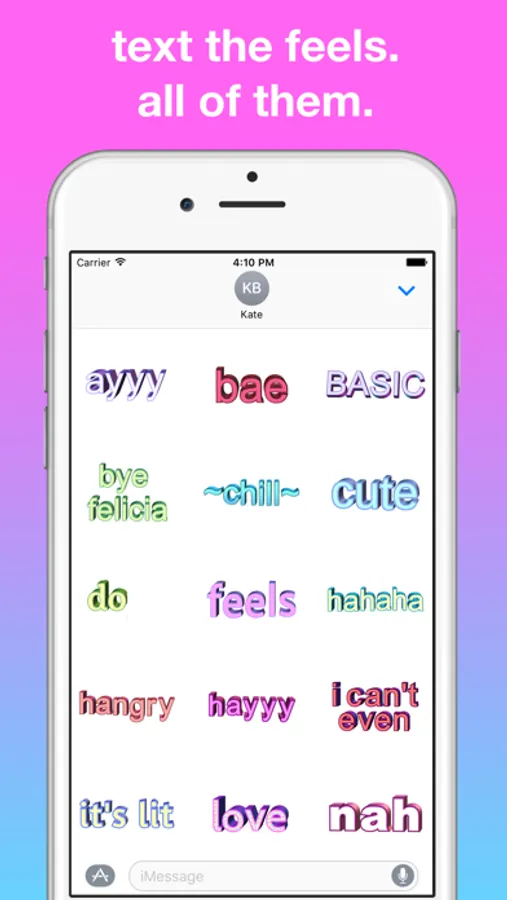 vibes has animated text reactions for everything. Say ayyy, chill, cute or want but times a thousand. Or just tell your friends they're being basic. 24 in all with more on the way.