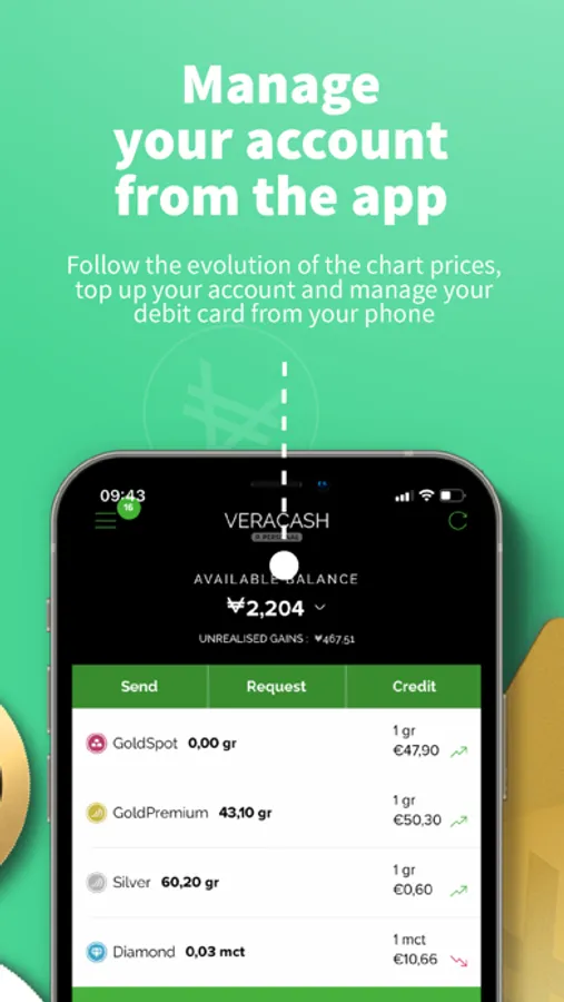 VeraCash allows you to buy gold and silver online in a simple, secure and totally dematerialized way. Open your VeraCash account in a few minutes and take advantage of a free account and payment card with no commission on your transactions worldwide.