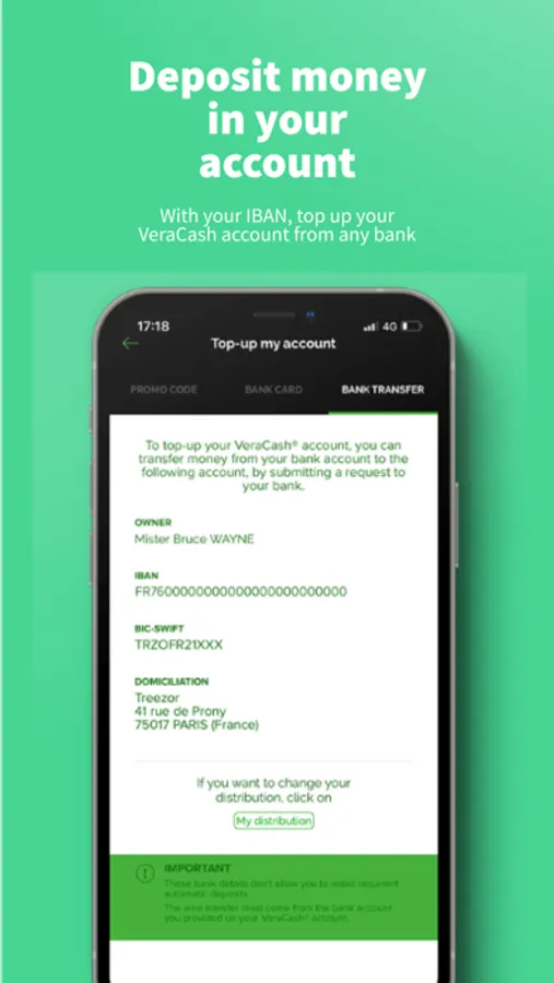 - Be free to choose your distribution, i.e. the material that will be used when you make a payment or a withdrawal by card.