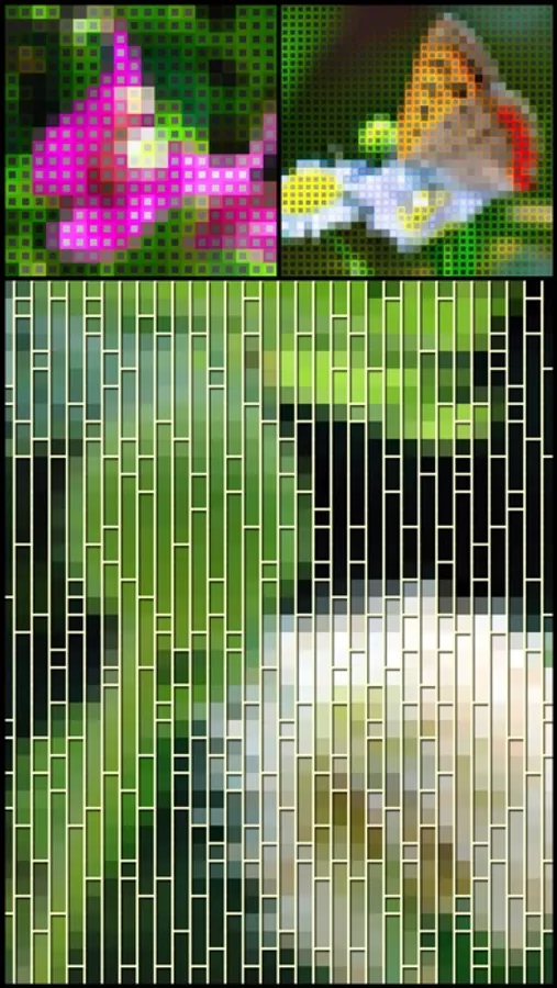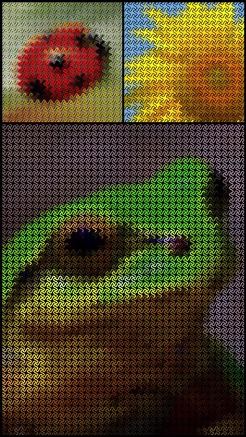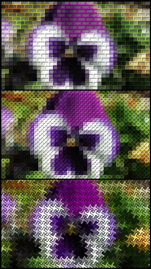 You can easily create artistic images by coloring each cells or its edges of the mosaic image, and drawing pattern like bricks or maze.