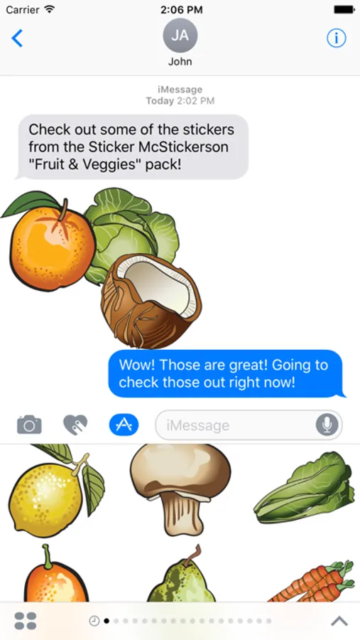 If you are on a device running iOS 10, follow the steps below to find your purchased Stickers