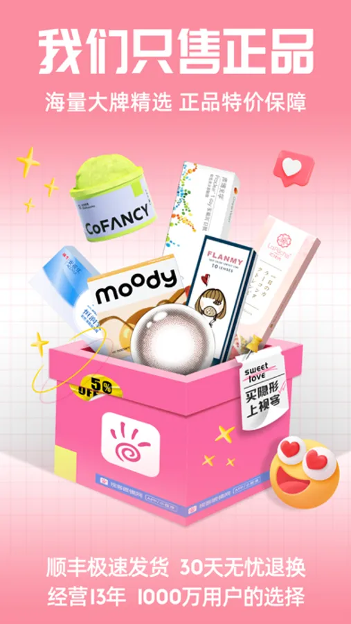 1、 严选全球优质隐形眼镜、彩瞳产品,顺丰配送,品牌官方授权,30天无忧售后!
