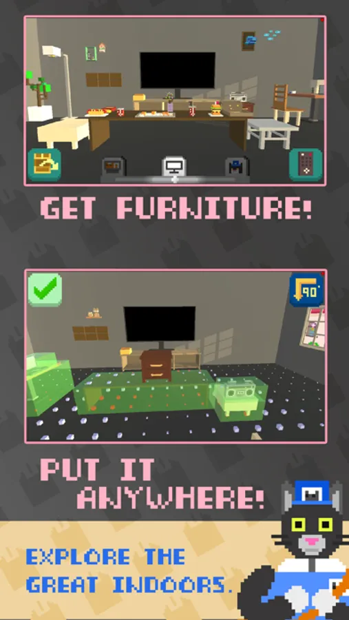 The Living Room lets you relive that experience on a mobile device. Rebuild your childhood, brick by brick — and as you play or unlock achievements in your 2D games, you’ll earn new furniture to customize your space. A game won’t work? Better blow air into it. Need new games? Buy one from the mailman.