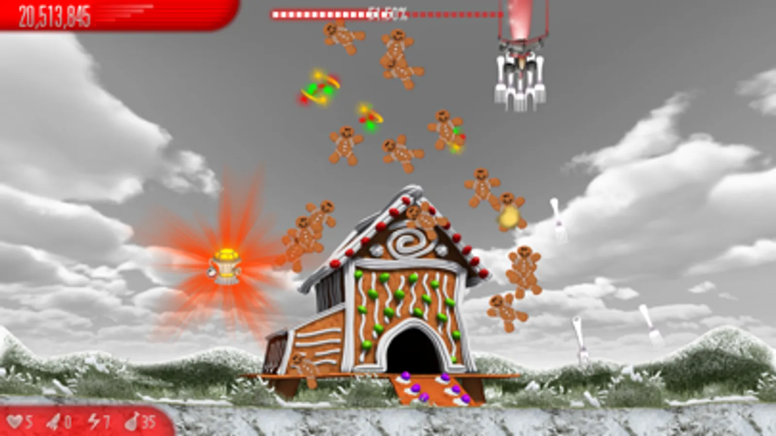 As the sun sets on Christmas Eve, everyone on Earth impatiently awaits the dawn of Christmas Day. However, invading intergalactic chickens have hatched a plan to make sure this dawn never comes. No opening of presents on Christmas morning, no riding a one-horse sleigh, no Christmas dinner. No, no, no, this won't do. Looks like you'll have to step up once more and save Christmas Day (quite literally)!