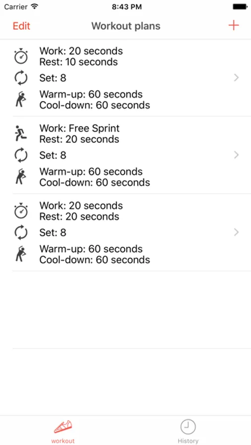 (ex: 20 seconds of work, rest for 10 seconds then repeat for a total of 8sets, off course there are modifiable)