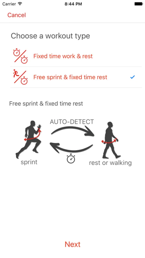 HIIT Watch can detect whether you are running or not. When your running period is finished, the rest timer starts a countdown.