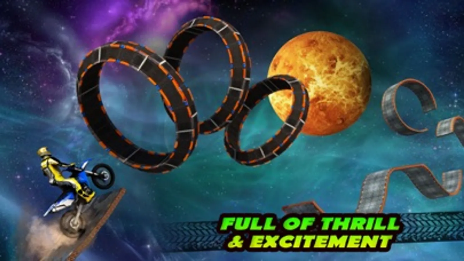 Let the best Bike Scrolling Adventures begin! Take your EXTREME bike stunting skills out of this world! Glaze outer space and speed through the stars. Dunk those wheels into the sand at the beach. The 3D graphics will take your breath away! Each of the two environmental modes will put your driving skills to the test with 26 challenges and missions, each carefully designed to double the thrill! Take a thrilling ride while speeding through flying obstacles such as fiery hoops, ramps and platforms, race tracks, and more! Do a corkscrew stunt and collect coins upon level completion to unlock advanced bike models! Can you pass the trial and become the ultimate Bike Rider?