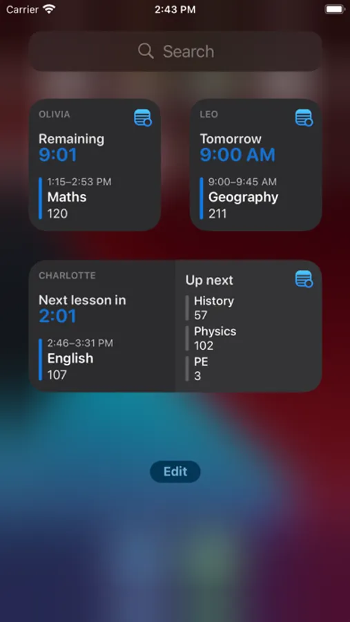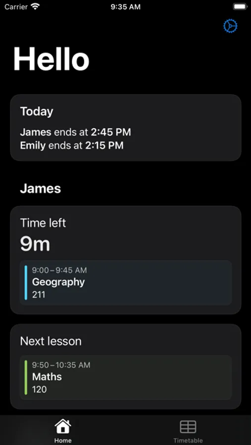 If you’re a parent, NicePlan will let you get your kids’ timetables under control*. On the Home tab you’ll find a practical summary and current information about every saved person.