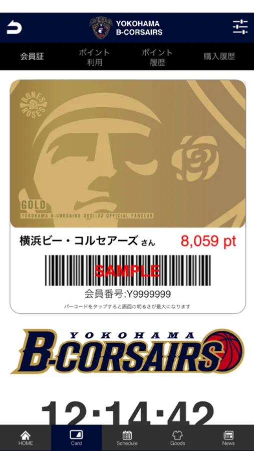ポイントは、試合を観戦したり、グッズを購入するとたまります。