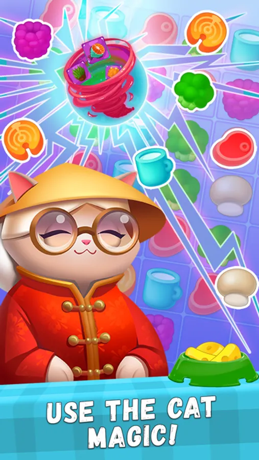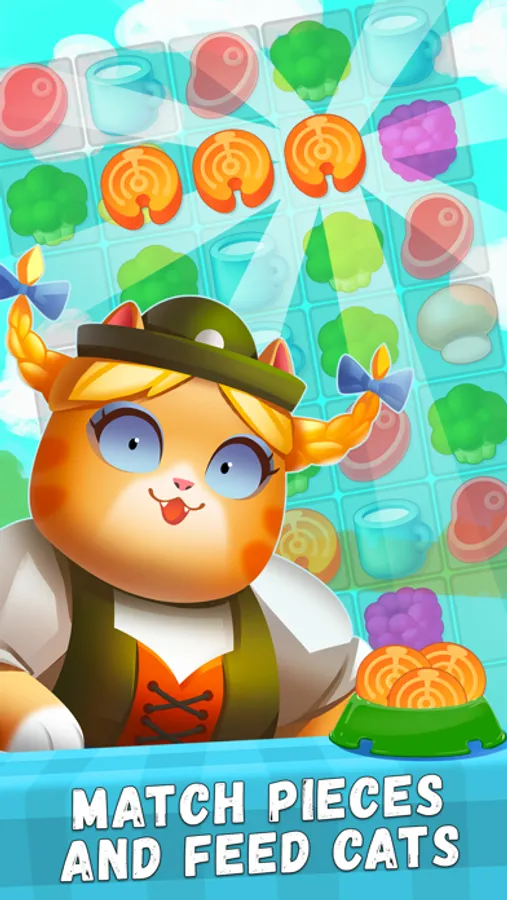 Addictive and simple gameplay: connect yummies of similar type and feed the lovely cats!