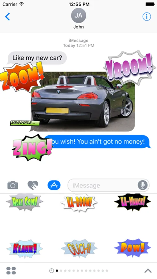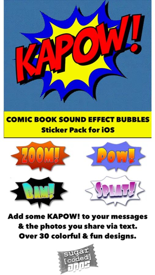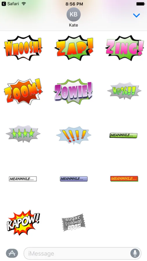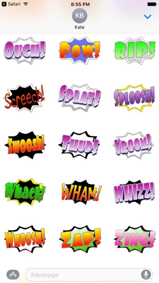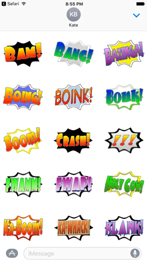 Add some comic pizzaz to your iMessage conversations with this pack of over 20 comic interjection bubbles.