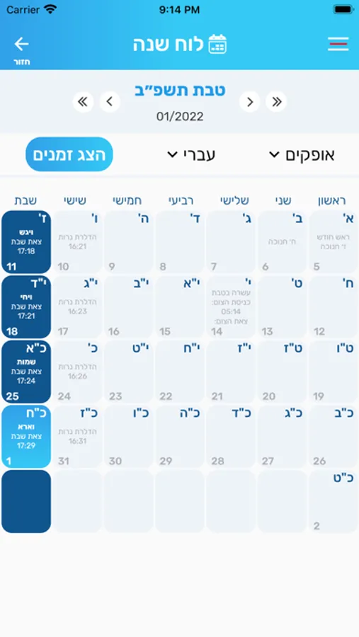 *זמני היום מפורטים - בהתאמה לכל עיר בארץ.