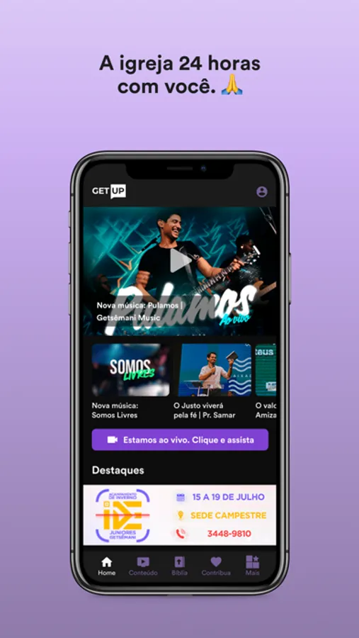 - Conecte-se com a igreja através dos grupos de interesse, receba conteúdo direcionado e obtenha sua carteirinha exclusiva.