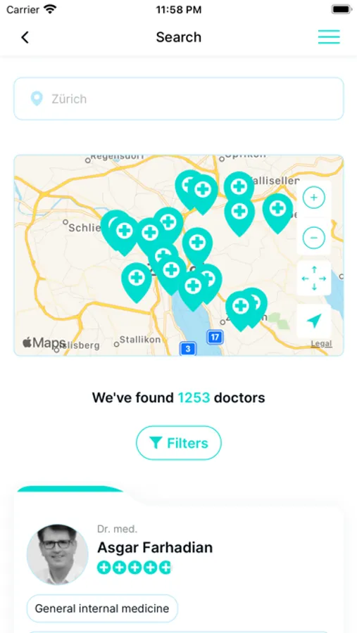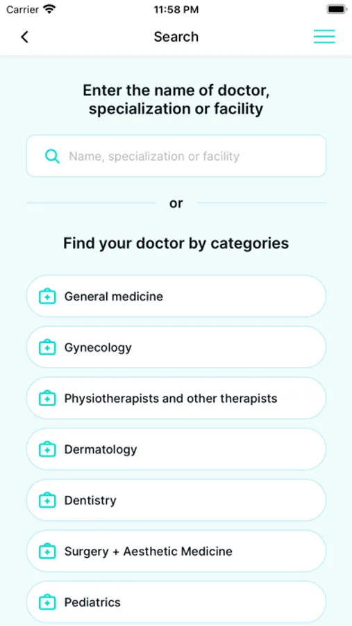 Search mobile for doctors, dentists or therapists