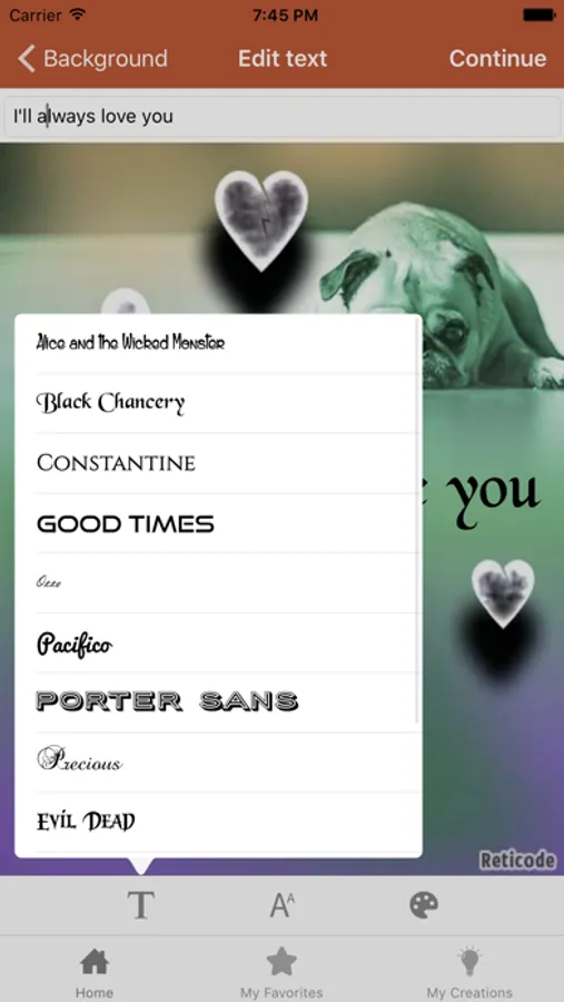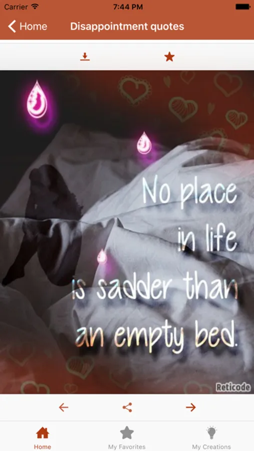 2. Create your own disappointment quotes: In the next step you will have to type in your personal text you want to appear on the card. Type in your text and then choose the font type, font size and text color. Remember that you can move the text with your finger to place it where you want. When you have finished click on the upper right arrow to move on.