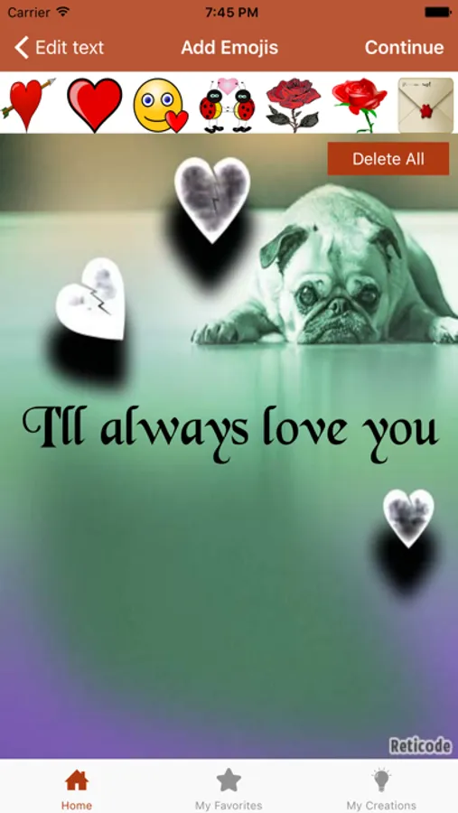3. Add icons: In this new step you can add different types of icons and pictures to your farewell or heartbroken quotes. Click on the icons you like most to add them to the image and then move them with your finger across the screen to place them where you want.