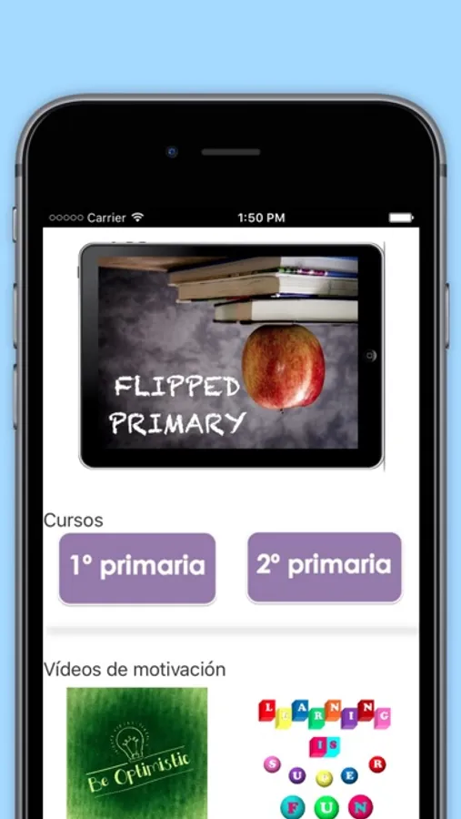 App basada en la metodología Flipped Classroom, destinada a todas las áreas de Primaria para visualizar y trabajar a través de vídeos explicativos. Hay más de dos mil vídeos educativos para las asignaturas de Primaria: Inglés, Educación Física, Lengua, Matemáticas, Ciencias Naturales, Ciencias Sociales, Música y Religión, desde 1º de Primaria hasta 6º de Primaria.