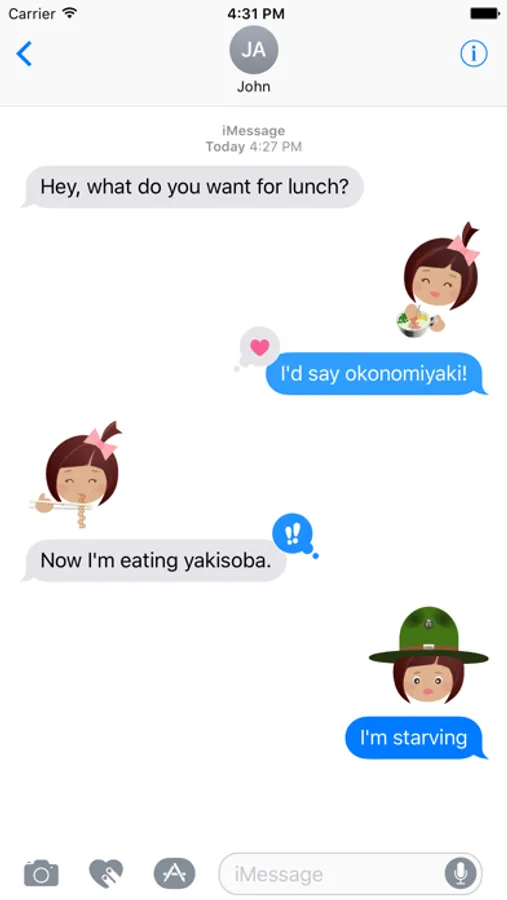 This is an original stickers pack based upon Japanese local cuisine Okonomiyaki(お好み焼), created by Okonomiyaki Yuki restaurant which is located at north side of Osaka, Japan.