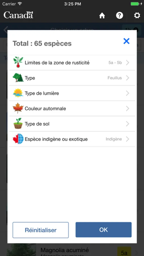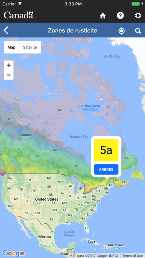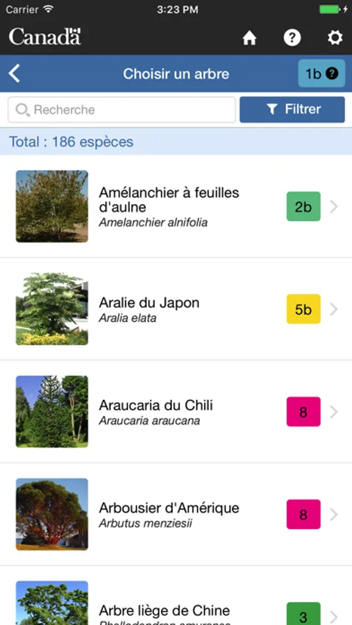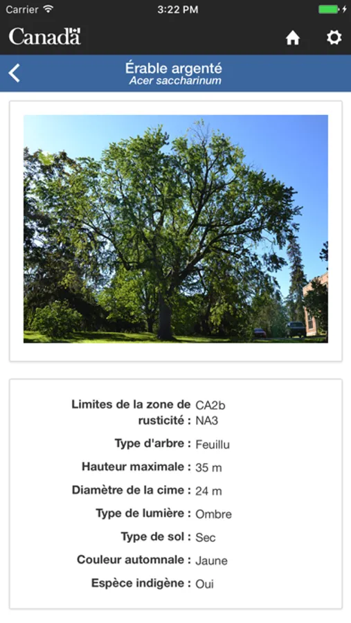 Mon Arbre contient une sélection d’arbres du Canada et de leurs zones de rusticité, en vue de permettre à la population canadienne de choisir l’arbre qui convient à son environnement. Cette application permet aux utilisateurs d'identifier leur zone de rusticité canadienne en utilisant le GPS de leur appareil mobile ou manuellement au moyen d’un écran tactile et de déterminer quels arbres sont adaptés au climat dans leur emplacement et d'autres zones de rusticité au Canada. Les utilisateurs peuvent accéder à des photos, des illustrations et des informations de base sur chaque arbre profilé dans l'application.