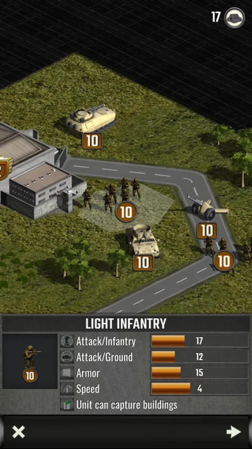 Build and use packages to temporarily improve your units' properties in tactical game.