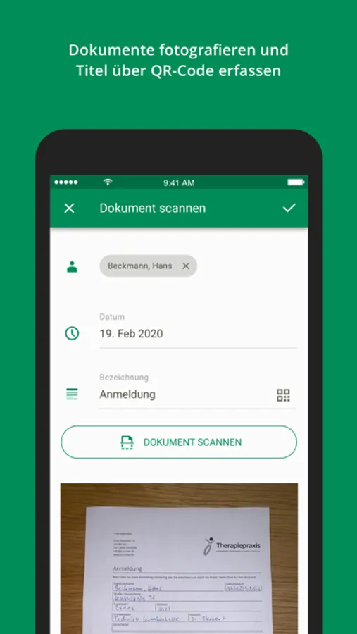 - Alle Dokumente digital speichern (Fragebögen, Arztbriefe, Verträge, etc.)