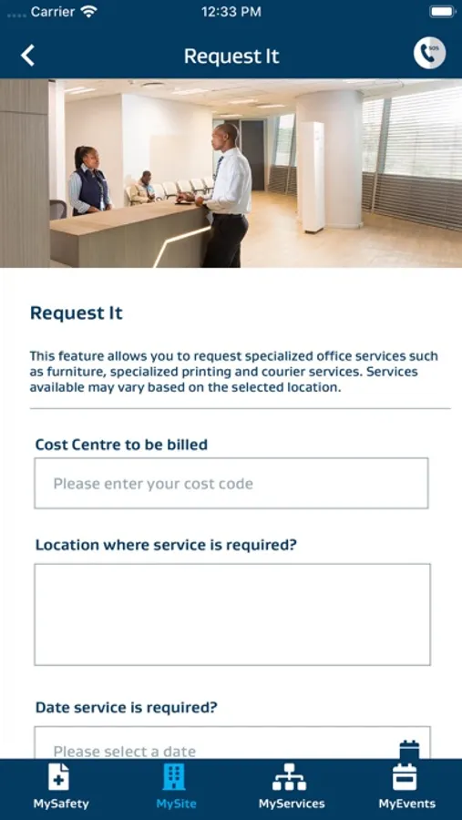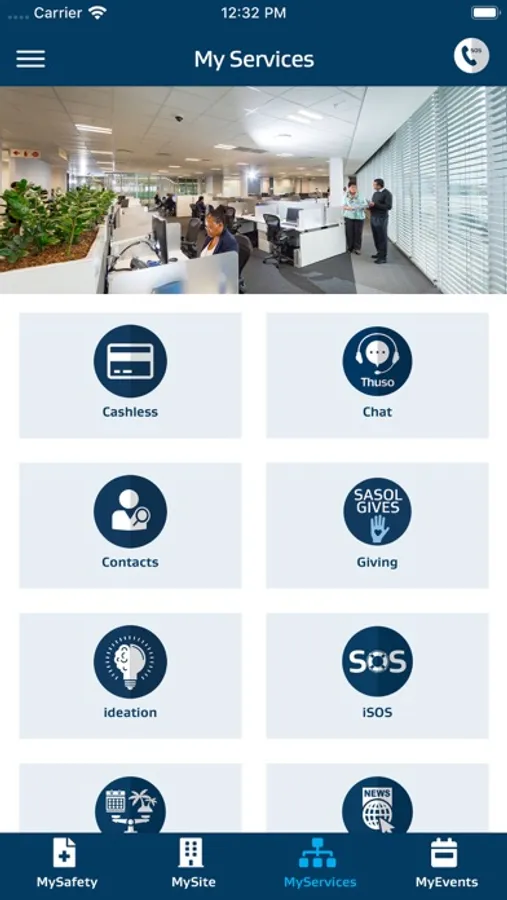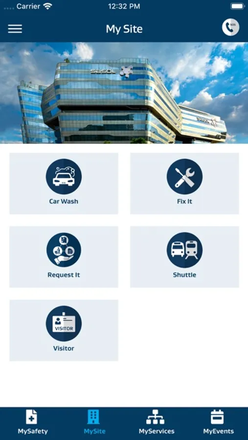 Select your preferred Sasol site from a pre-defined list to access services available for the selected site. NOTE: Depending on the site that selected, the services displayed may vary, as not all services and features are available at all sites.