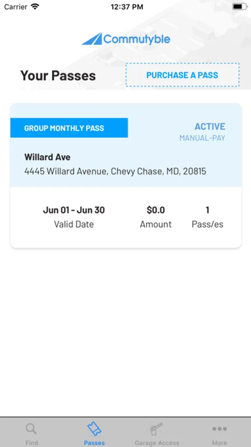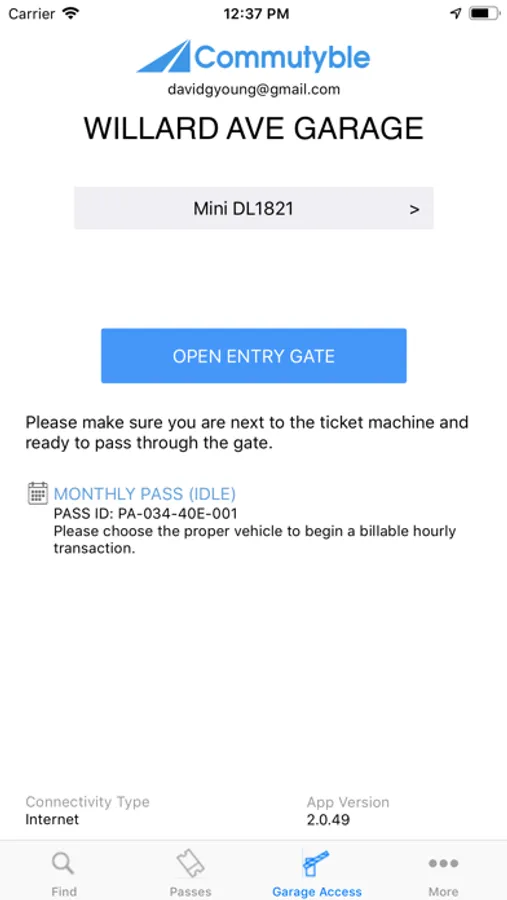Commutyble account holders can use this app to to open the gates to garages for which they are authorized using their mobile phone instead of an access card or a windshield tag.