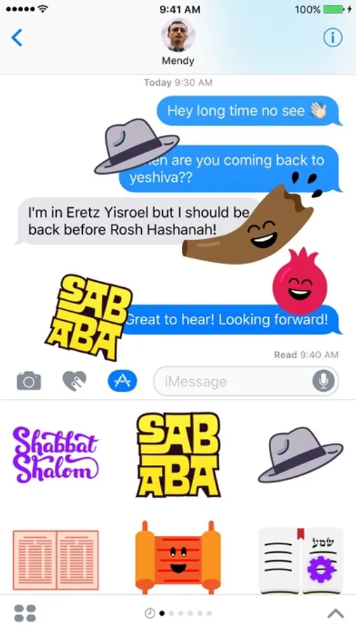 Give your messages a Jewish flavor with these first of its kind Jewish stickers. Jewish for iMessage is a unique set of Jewish stickers brought to you by a collaboration of the best Jewish designers. Say "Shabbat Shalom" with a beautiful lettering or top off your message with a snazzy fedora. Feeling Israeli? Send a "sababa!" Whatever you choose you can be assured your messages will always give off a "heimish" feel.