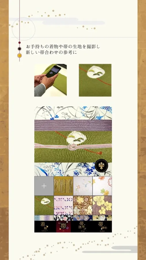 手持ちのお着物・帯に合わせて、簡単に帯〆・帯揚の色合わせを試せるアプリです。