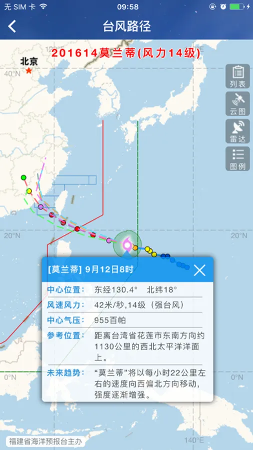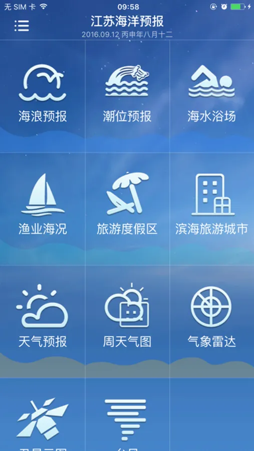 江苏省海洋预报集成台风路径、卫星云图、气象雷达、天气预报、渔业海况、潮位预报、海浪预报、海水浴场、旅游度假、周天气等功能。系统界面风格简洁、展示方式多样、为防汛指挥作出快速、正确的决策提供支持。