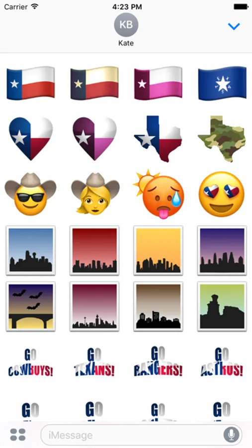 Texas emoji right on your iPhone, iPad or iPod Touch! Show your city pride with stickers for Dallas, Fort Worth, Houston, Austin, San Antonio, El Paso, and Palo Duro Canyon!